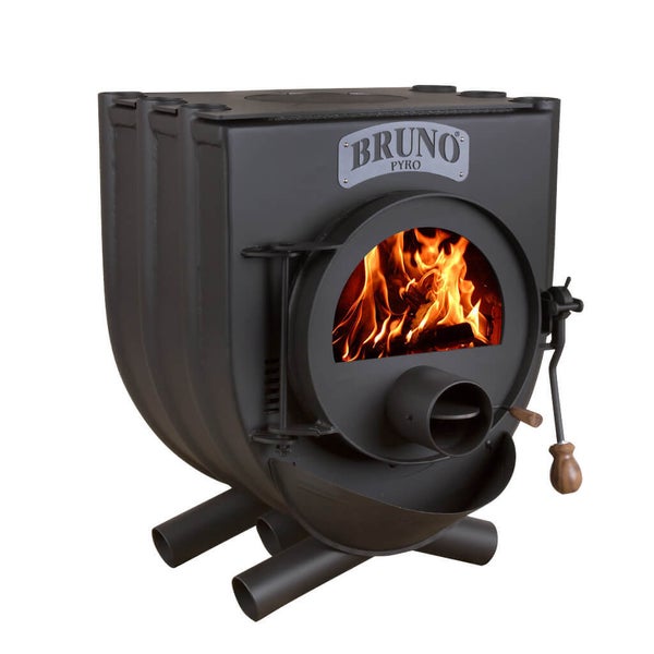 Das Äußere dieses Bruno Pyro I mit Herdplatte Warmluftofens wird durch die auffälligen Metallröhren bestimmt, welche von den Seiten her die Brennkammer einfassen und gleichzeitig die Standfüße der Konstruktion bilden. Für das Konvektionsprinzip, nach dem ein Warmluftofen arbeitet, sind sie von größter Bedeutung. Die Luft in den Röhren wird durch das Feuer im Inneren des Bruno erwärmt, ohne dabei in direkten Kontakt mit den Flammen zu treten. Sie tritt aus den Röhren und sorgt so schnell für angenehm warme Temperaturen im gesamten Aufstellraum. Im Gegenzug wird dadurch ständig kalte Luft von unten her in einem geräuschlosen Kreislauf nachgezogen - so werden die Gesetze der Physik intelligent genutzt, um selbst größere Räumlichkeiten, wie Werkstätten oder weitläufige Wohnzimmer, zügig und gleichmäßig zu erwärmen. Doch das ist nicht die einzige Einsatzmöglichkeit des Multitalents: Auf seiner Oberseite verfügt dieses Modell über eine Herdplatte, auf der Sie leicht warme Speisen und Getränke zubereiten. Die Fläche können Sie außerdem nutzen, um auf ihr eine optional erhältliche Backkammer zu platzieren.