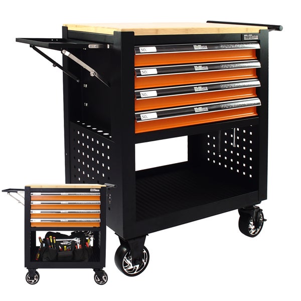 Werkstattwagen Profi Compact leer 85 x 68 x 46 cm Holzplatte 4 Schubladen Lochwand Ablage orange