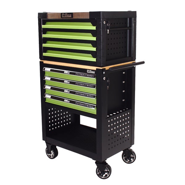 Werkstattwagen und Werzeugkiste Profi Compact unbestück Holzplatte 8 Schubladen Lochwand Ablage grün