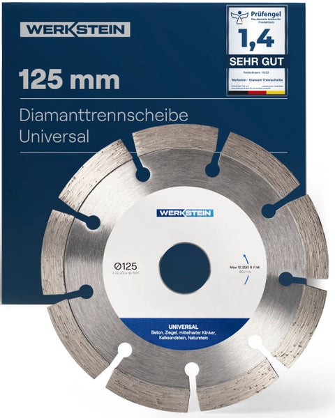 WERKSTEIN Extrem langlebige Diamantscheibe 125mm x 22,23mm x 10mm I Universal Diamanttrennscheibe 125 mm zum Schneiden von Stein, Beton, Ziegel uvm. I Trennscheibe 125 Stein für Winkelschleifer