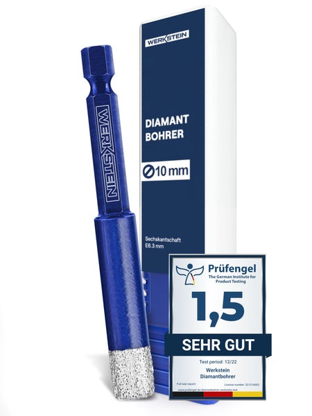 WERKSTEIN Fliesenbohrer 10mm mit Diamantbohrkrone - Extrem langlebiger Feinsteinzeug Bohrer zum Bohren von Fliesen, Glas, Keramik, Porzellan, Granit, Marmor uvm. - Diamantbohrer mit Sechskantschaft