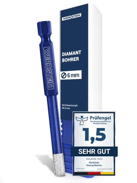 WERKSTEIN Fliesenbohrer 6mm mit Diamantbohrkrone - Extrem langlebiger Feinsteinzeug Bohrer zum Bohren von Fliesen, Glas, Keramik, Porzellan, Granit, Marmor uvm. - Diamantbohrer mit Sechskantschaft