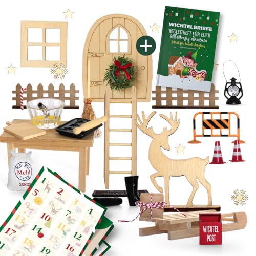 Wichteltür Set - Komplettes Wichtel Zubehör Weihnachten - Wichtelbriefen & Bastelvorlagen - Wichtel Set Weihnachten Komplett - Wichtel Baustelle Set - Wichteltür Zubehör Weihnachtswichtel Milula
