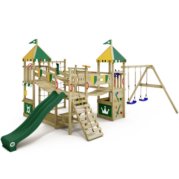 WICKEY Spielturm Ritterburg Smart Queen mit Schaukel und Rutsche, Spielhaus mit Sandkasten, Kletterleiter und Spiel-Zubehör - grün