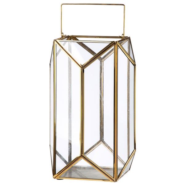 Dieser Leuchter, in sechseckiger Form, ist in jeder Räumlichkeit, wie Küche, Wohn- und Esszimmer ein dekoratives und lichtspendendes Objekt. Auch in einer ganz besonderen Wellness-Oase fügt es sich problemlos ein. Es ist aus Glas mit einer Einfassung im filigranen goldfarbenem Metall und fügt sich problemlos in ein Ensemble aus unterschiedlichen Formen und einem Material-Mix ein. Es ist hier eine handelsübliche Kerze in Kugel- oder Stumpen-Form zu verwenden. Auch als Geschenk-Idee ist dieses Windlicht hervorragend geeignet.