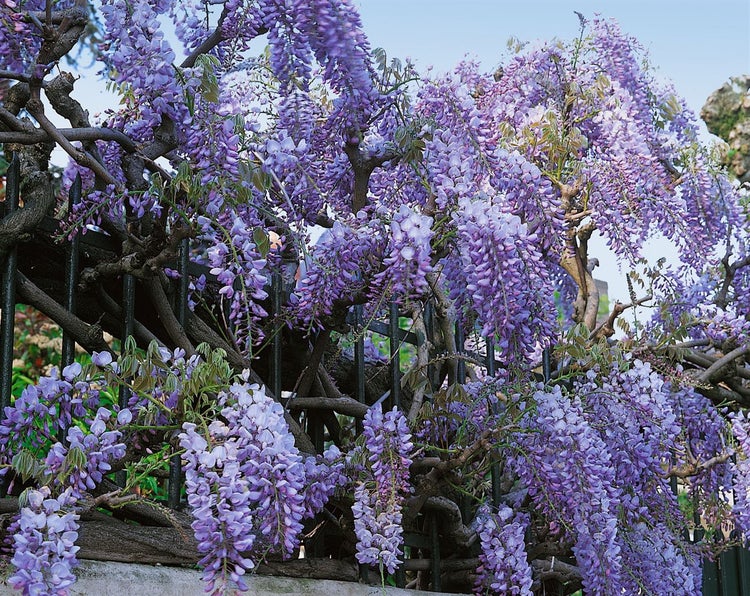 Wisteria sinensis ‘Prolific’, der Chinesische Blauregen (auch Glyzinie genannt), ist ein imposantes Klettergehölz, das mit üppigen, duftenden Blütentrauben begeistert. Im späten Frühling bis Frühsommer öffnen sich unzählige blauviolette, bis zu langen Kaskaden herabhängende Trauben, die über dunkelgrünem, gefiedertem Laub eindrucksvoll zur Geltung kommen und bei warmem Sommerverlauf oft noch eine leichtere Nachblüte zeigen. Der starkwüchsige, verholzende Schlinger entwickelt sich zu einer kraftvollen Rankpflanze mit elegantem, lockerem Aufbau und kann, auf stabilem Gerüst geführt, Pergolen, Lauben, Fassaden und Rosenbögen eindrucksvoll begrünen. Als Solitär an Spalieren oder als charaktervolle Kübelpflanze in großen Gefäßen auf Terrasse und Innenhof entfaltet der Blütenstrauch seinen vollen Zierwert und verleiht Vorgärten und Sitzplätzen romantischen Charme.