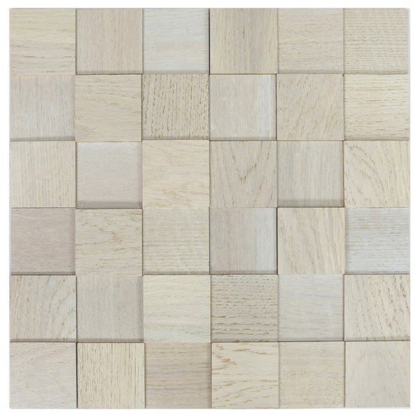 wodewa Holzmosaik Wandverkleidung selbstklebend 3D Optik Eiche Artic, geölt 30x30cm Wandpaneele Moderne Wanddekoration Holzverkleidung Wohnzimmer Küche Schlafzimmer