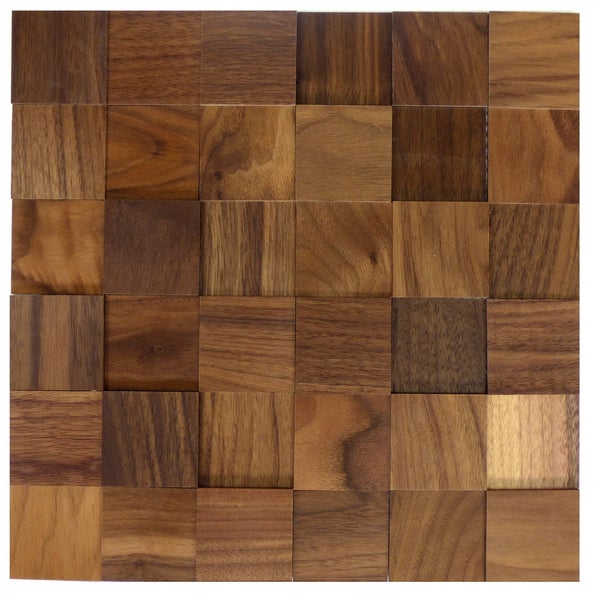 wodewa Holzmosaik Wandverkleidung selbstklebend 3D Optik Nussbaum, geölt 30x30cm Wandpaneele Moderne Wanddekoration Holzverkleidung Wohnzimmer Schlafzimmer