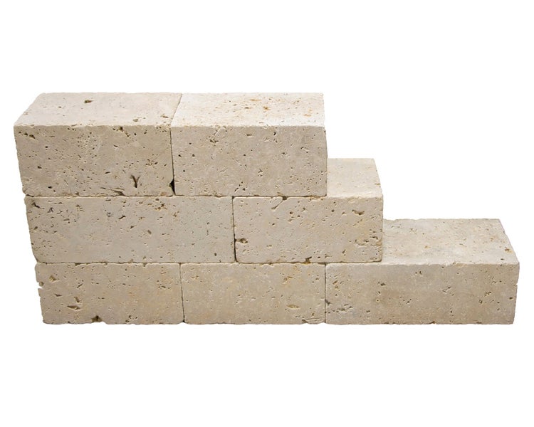 Naturstein Mauerstein Travertin EXTRA LIGHT - gesägt, getrommelt, beige 15 cm hoch