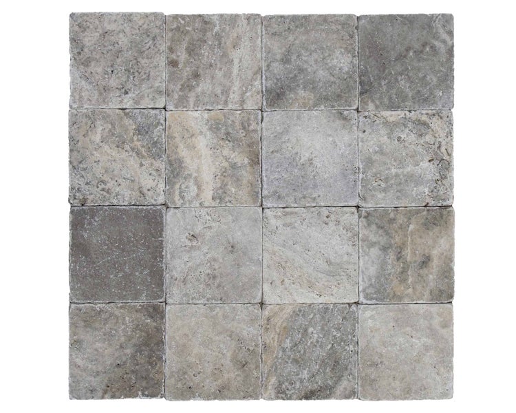 Wohnrausch Travertin Mosaikfliesen SILVER 10 x 10 x 1 cm getrommelt in grau