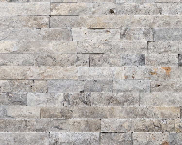 Travertin Wandverblender Splitface SILVER 5 cm hoch, grau