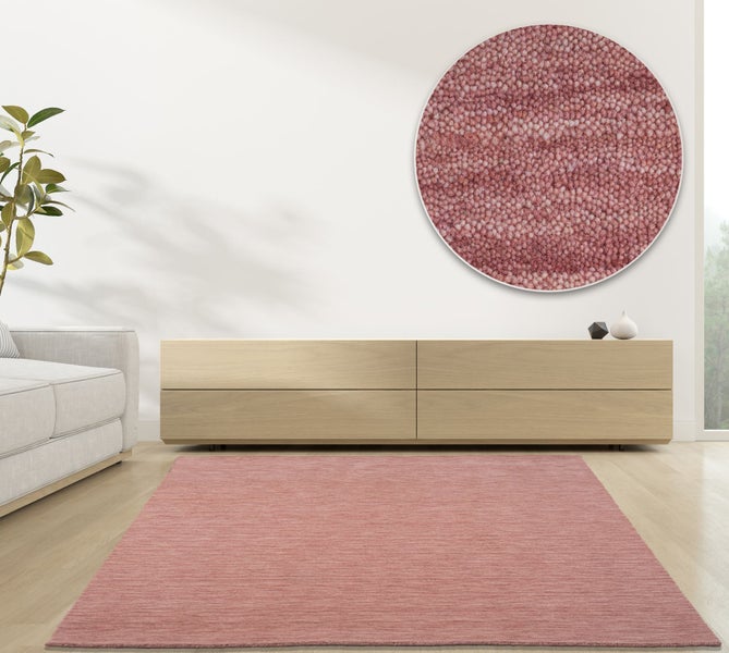 Wollteppich Luxus Designerteppich moderner uni Teppich aus reiner Schurwolle Rosa 195x250 cm