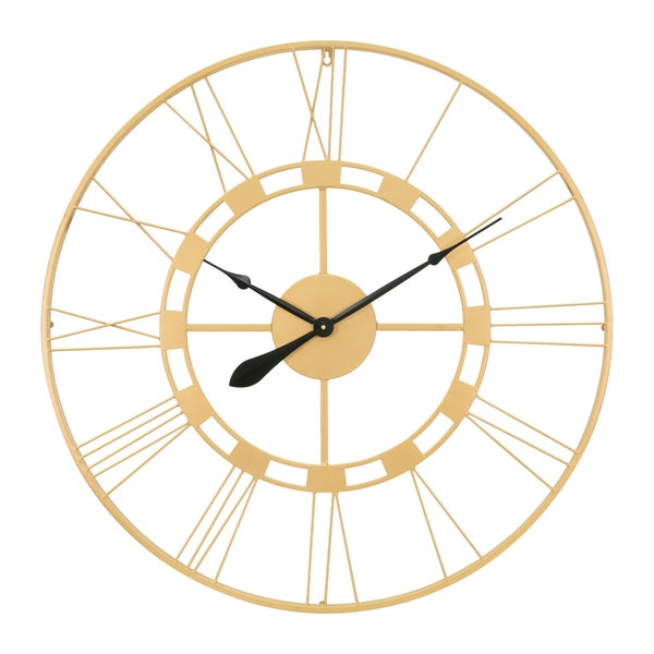 WOMO-DESIGN | Große Wanduhr Stockholm Ø85 cm rund, Unikat, handgefertigt aus Eisen, im Vintage-Stil, Altgold mit Großen römische Ziffern, Lautlos, ohne Tickgeräusche, Dekouhr Dekorative Uhr Design Uhr