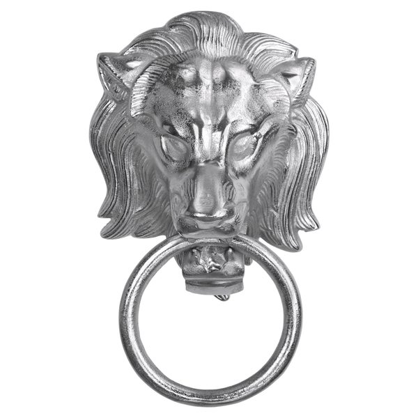 WOMO-DESIGN Handtuchhalter Löwenkopf mit Ring, aus Aluminium vernickelt, Unikat, Silber, (BxH): 10x31 cm, Designer Löwenkopf, Handtuchring Türklopfer Löwe Lion Wandfigur WC Bad Dekoration Accessoire