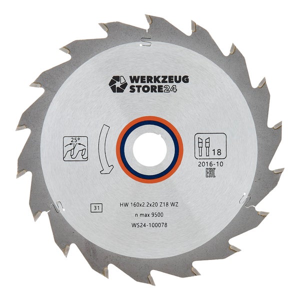 WS24 HM Kreissägeblatt Holz 160 x 2,2 x 20 WZ 18 - WS24-100078