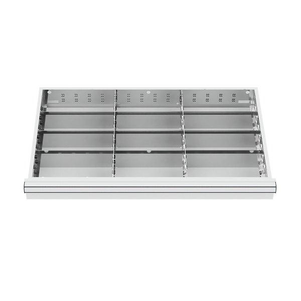 Hinweis: Diesen Artikel erhalten Sie als Speditionslieferung direkt vom Hersteller. Bitte geben Sie uns unbedingt eine Telefonnummer für die Spedition an. Des Weiteren kann dieser Artikel NUR innerhalb Deutschlands versendet werden. (This item can ONLY be shipped within Germany) Schubladeneinteilung Metalleinteilung BLH 200-300 mm/p> Artikelbeschreibung: Innenmaß 800x450mm Raster: R 64-36 12 Fächer 2 x MF 6 x TW 275 3 x TW 250 4 x Seitenfachschienen