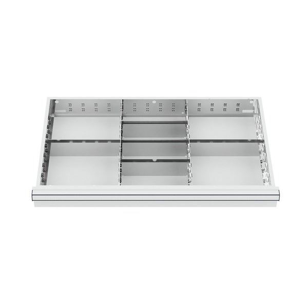 Hinweis: Diesen Artikel erhalten Sie als Speditionslieferung direkt vom Hersteller. Bitte geben Sie uns unbedingt eine Telefonnummer für die Spedition an. Des Weiteren kann dieser Artikel NUR innerhalb Deutschlands versendet werden. (This item can ONLY be shipped within Germany) Schubladeneinteilung Metalleinteilung BLH 200-300 mm/p> Artikelbeschreibung: Innenmaß 800x450mm Raster: R 64-36 8 Fächer 2 x MF 2 x TW 275 3 x TW 250 4 x Seitenfachschienen