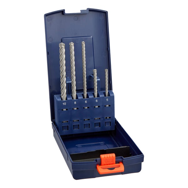 Hammerbohrer 4 Schneider für optimale Laufruhe wenig Vibration und genaues Arbeiten Ideal geeignet für Arbeiten mit Materialien wie Naturstein, Beton oder Mauerwerk Durch die Präzisionsschneide wird das Einkaken bei Armierungen verhindert SDS-Plus Aufnahme ermöglicht leichtes und schnelles einspannen des Bohrers