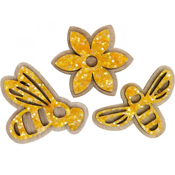 Wunderschöne Frühlingsdeko: Glitzernde Bienen und Blumen aus Holz, Streudekoration, Orange, 36 Stück