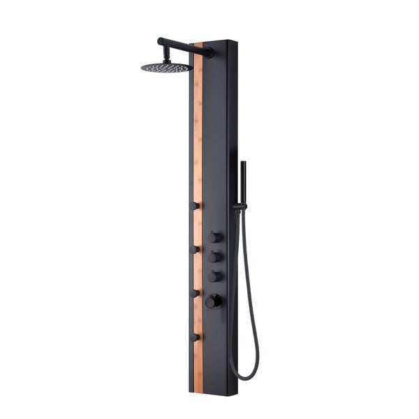 XXL Duschpaneel in Schwarz Matt mit Thermostat und echter Bambuseinlage