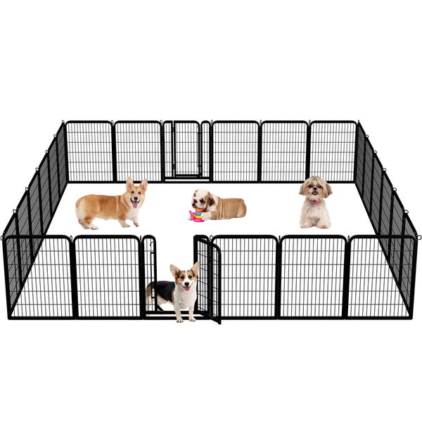 Yaheetech 16-teilig Hundelaufstall, 80 cm hoch mit 2 Türen, Automatische Verriegelung, Faltbare Freigehege für Garten, Schwarz