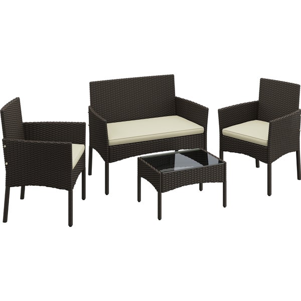 Yaheetech 4-er Rattanmöbel-Set für 4 Personen, bestehend aus einem Zweisitzer-Sofa, 2 Einzelsofas und einem Couchtisch in Rattanoptik für Terrasse/Balkon/Garten, Braun und Beige