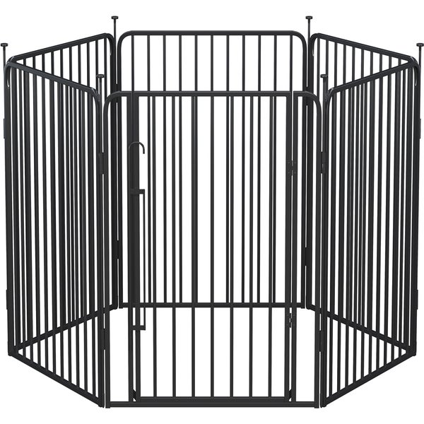 Yaheetech 6-teiliger Welpenauslauf, 100 cm hoch mit integriertem Schloss, geräuscharmen Rohren, Bodenschutzvorrichtungen Hundespielplatz für Haus und Garten, Schwarz