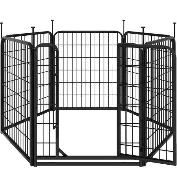 Yaheetech 6-teiliger Welpenauslauf, 80 cm Hundezwinger, einteiliger runder Kopfverschlussmechanismus, faltbarer Freilauf für Hunde, Haus und Garten, werkzeuglose Montage, Schwarz