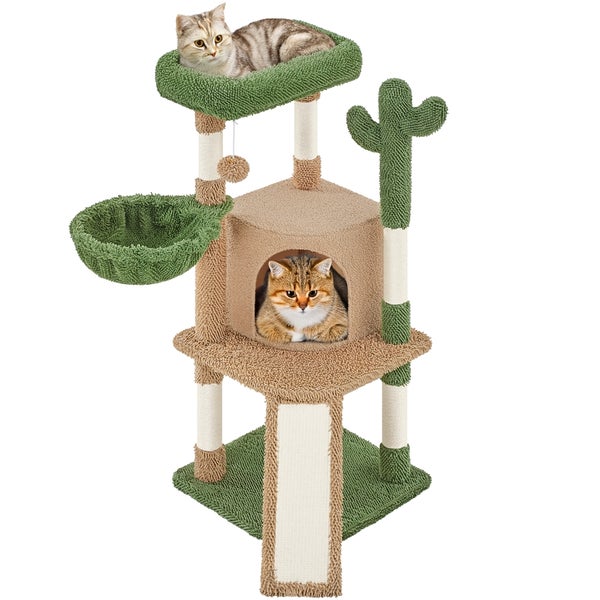 Yaheetech Kaktus Kratzbaum, 106,5 cm Höhe Kletterbaum mit Aussichtsplattform Katzenhöhle Liegemulde Sisalstämme für Kätzchen, Braun & Grün
