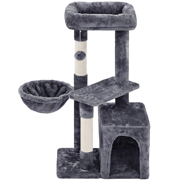 Yaheetech Katzenbaum, 87 cm Aussichtsplattform, Hängematte, Katzenhöhle, Plattform, Sisalstämme und hängender Plüschball, Dunkelgrau