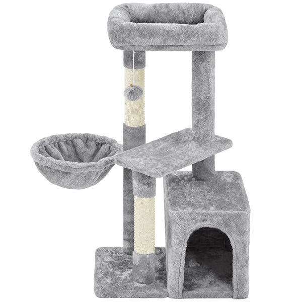 Yaheetech Katzenbaum, 87 cm Aussichtsplattform, Hängematte, Katzenhöhle, Plattform, Sisalstämme und hängender Plüschball, Hellgrau