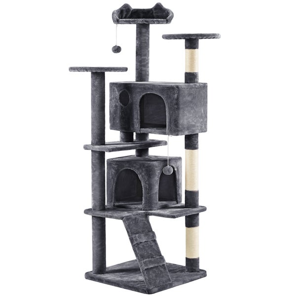 Yaheetech Kratzbaum, 178 cm hoch Katzenkratzbaum mit 3 Aussichtsplattformen & 2 Katzenhöhlen & Leiter & 3 Sisalstämme & 2 Hängenden Plüschbälle Katzenbaum für Kätzchen, Dunkelgrau