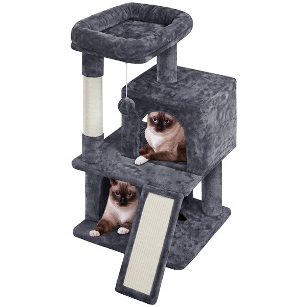 Yaheetech Kratzbaum, 91 cm Höhe Katzenbaum mit Aussichtsplattform & 2 Höhlen & Abnehmbarer Plüschball Kletterbaum Katzenkratzbaum, Dunkelgrau
