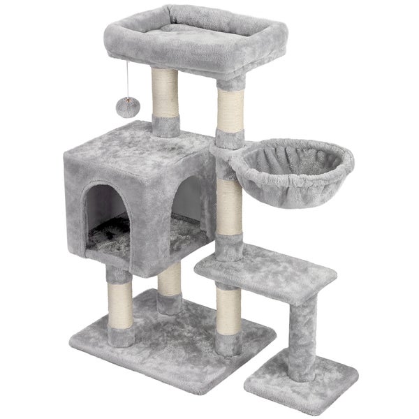 Yaheetech Kratzbaum, 96,5 cm hoch mit Aussichtsplattform, Ruhehöhle, Katzenhöhle, Sisalpfosten und Plüschball Kratzbaum, Hellgrau