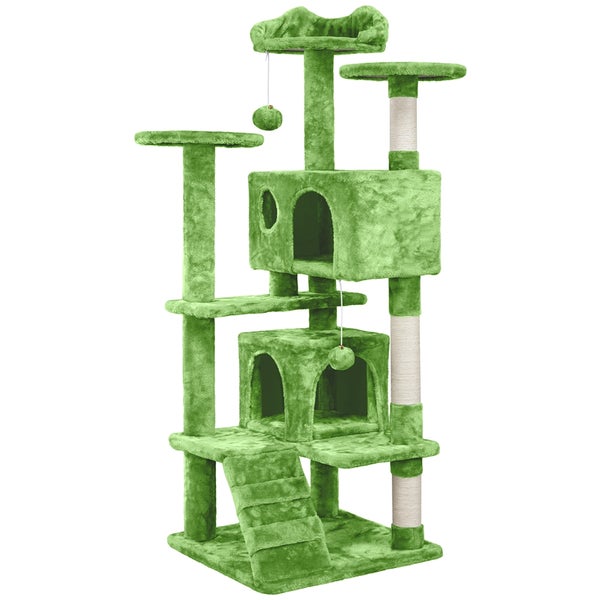 Yaheetech Kratzbaum Kletterbaum, 139 cm hoch Kratzbaum mit 3 Aussichtsplattformen & 2 Katzenhöhlen & Leiter & 3 Sisalstämmen & 2 hängenden Plüschbällen Katzenbaum für Kätzche, Grün