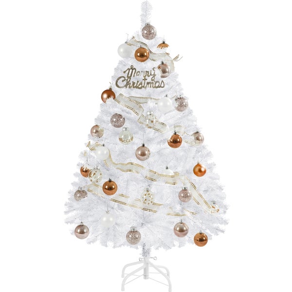 Yaheetech Künstlicher Weihnachtsbaum, 124 cm Tannenbaum mit 208 Spitzen & Faltbarem Metallständer Christbaum Kunstbaum für Weihnachtsdekoration, Weiß