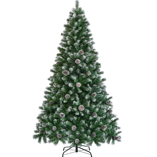 Yaheetech Künstlicher Weihnachtsbaum, 183 cm Schwer entflammbarer Tannenbaum mit Schnee und 64 Kiefernzapfen (Ø ca.106 cm) 920 Spitzen, Schnellaufbau Klappsystem inkl. Metallständer, Grün