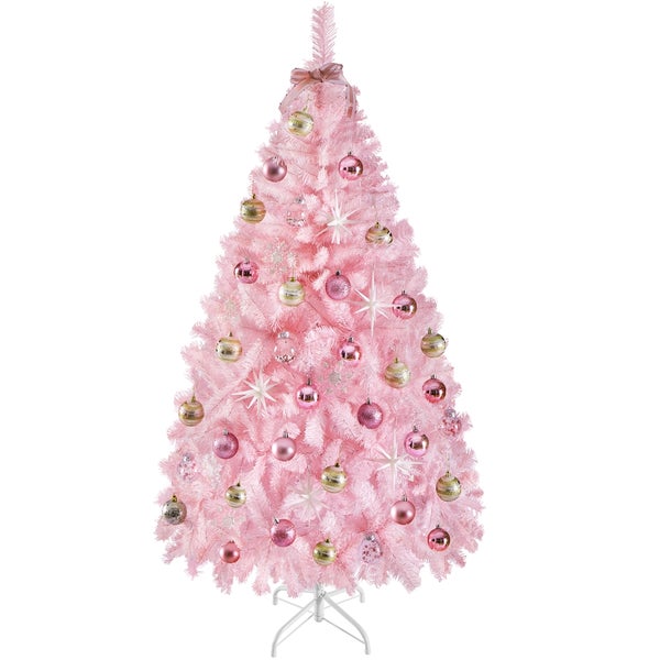 Yaheetech Künstlicher Weihnachtsbaum, 183 cm Tannenbaum mit 598 Spitzen & Faltbarem Metallständer Christbaum Kunstbaum für Weihnachtsdekoration, Rosa
