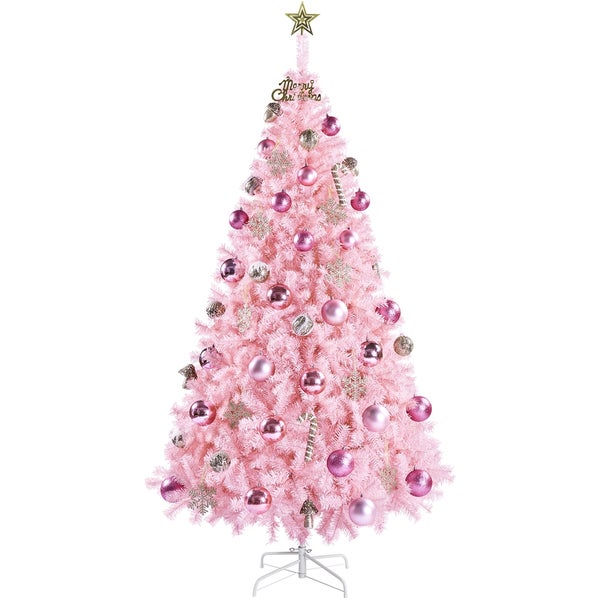 Yaheetech Künstlicher Weihnachtsbaum, 219 cm Klappbar, mit ca.1446 Spitzen Schnellaufbau Tannenbaum inkl. Metall Christbaum Ständer Festliche Dekoration, Rosa