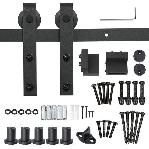 4. Schiebetürbeschlag set: Inklusive Montageset für die Befestigung an Holz- oder Betonwänden. Mit Bodenführung und Türstoppern zur Begrenzung des Laufweges