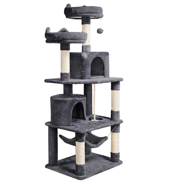 Yaheetech Stabiler Kratzbaum, Höhe 158 cm mit 2 Aussichtsplattformen & 2 Höhlen & Hängematte Katzenkratzbaum für Kätzchen, Dunkelgrau