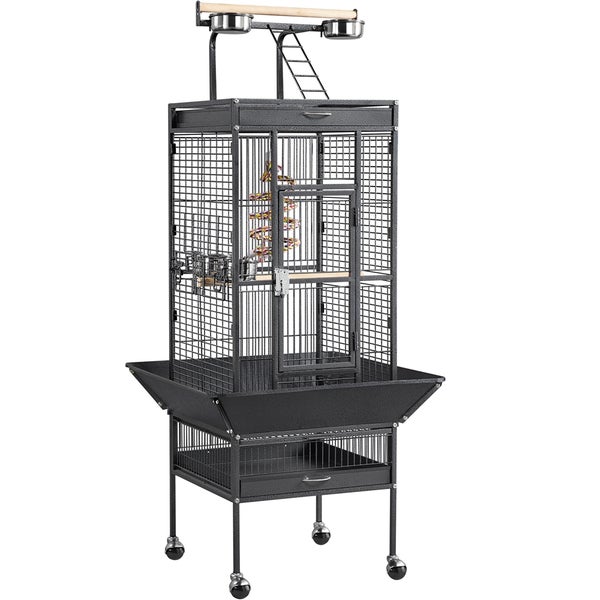 Yaheetech Vogelkäfig Vogelvoliere, 65,5 x 65,5 x 156 cm Vogelbauer Käfig für Wellensittich Papageien, Schwarz