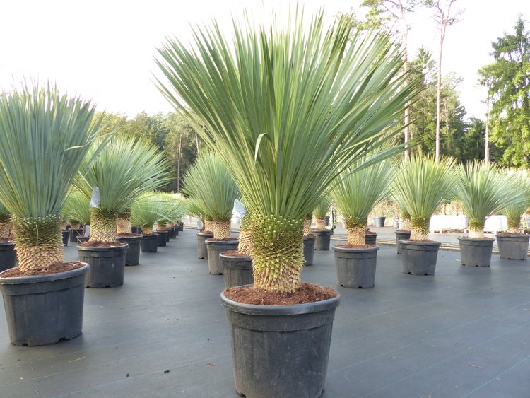 Die blaublättrige Yucca Rostrata bezeichnet eine Pflanzenart aus der Gattung der Palmlilien (Yucca) in der Familie der Spargelgewächse (Asparagaceae) und findet auch in unseren Breitengraden immer mehr Anhänger. Da es sich bei dieser Yucca Sorte um eine Wüstenpflanze handelt, ist sie Sonne und trockene Wärme gewohnt. Daher macht ihr z.B. in der Wohnung ein Platz direkt neben einer Heizung nicht allzu viel aus. Die pflegeleichte Yucca Rostrata wird immer beliebter bei den Hobbygärtnern, da ihr u.a. auch größere Temperaturschwankungen nichts ausmachen, auch u.a. ungeheizte Wintergärten, Büros oder Wohnzimmer mit Temperaturen zwischen 10° und 30°C sind sehr gut/ideal geeignet! Die Pflanze ist äußerst winterhart, das heißt, sie verträgt Temperaturen bis -18°C. Es ist jedoch wichtig, die Pflanze in den Wintermonaten vor Feuchtigkeit zu schützen, da die Pflanze anfällig für Wurzelfäule ist. Ein genereller Mangel an Licht kann der blaublättrigen Yucca Rostrata stark schaden und sollte daher möglichst immer vermieden werden. Diese Yucca gedeiht gut in einer durchlässigen Erde. Hierzu kann normale Gartenerde mit Sand und Kompost gemischt bzw. bereits fertige Kakteenerde aus dem Handel genutzt werden. Denn diese empfindet den Boden der Wüste, der ursprünglichen Herkunft der Pflanze, sehr gut nach. Bitte keine torfhaltige Erde verwenden, diese kann zu Fäulnisbildung an den Wurzeln führen. Idealerweise wird die blaublättrige Yucca Rostrata in einem Kübel kultiviert, so kann der Standort zwischen Sommer und Winter variieren. Viele Hobbygärtner nutzen die Pflanze ganzjährig als Zimmerpflanze, aber besonders an warmen und sonnigen Tagen ist ein Standort an einem vollsonnigen Platz im Freien sehr gut für die weitere gesunde Entwicklung der blaublättrigen Yucca Rostrata.