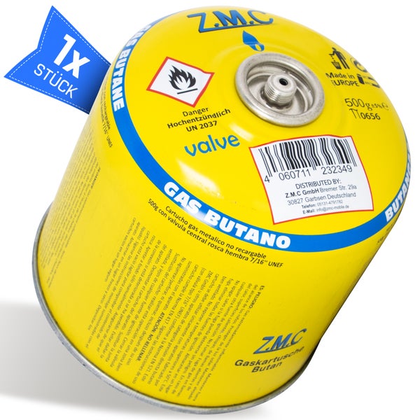 Z.M.C 1X Gaskartuschen 500g, Propan/Butan Gas 990ml, Gaskartusche EN417, Eurogewinde Schraubgewinde Anschluss, Schraubkartusche für Unkrautbrenner, Universal Druckgasdose mit Schraubventil