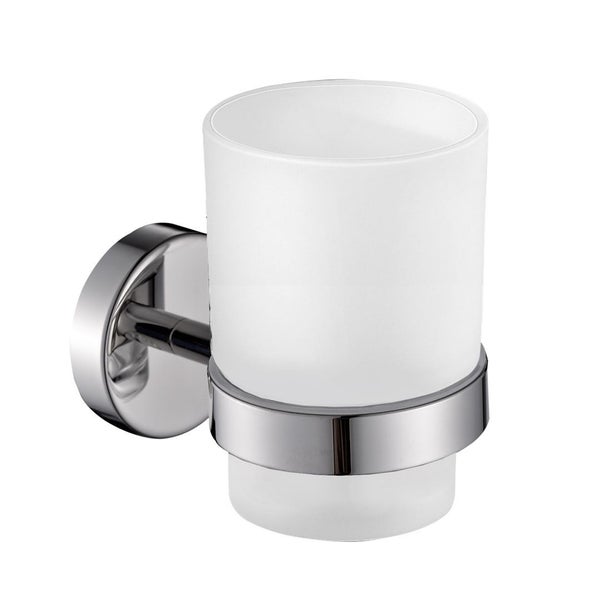 Zahnbürstenbecher aus Mattglas und Edelstahl, verchromt | Loto