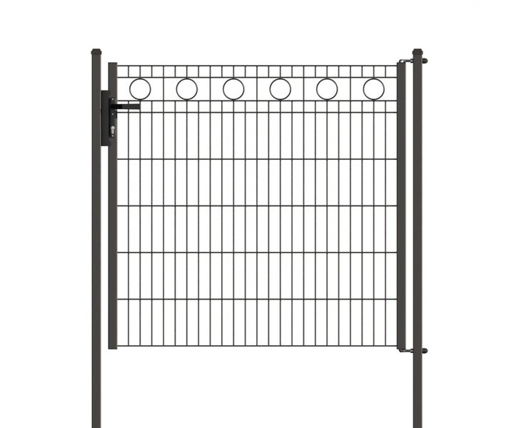 Zauntor ZAUNGURU ECO-Line Kreis aus Metall, Höhe: 123cm, Breite: 143cm, 1-flügelig inkl. Pfosten, Locinox-Schloss und Zubehör, Feuerverzinkt und zusätzlich in RAL 7016 Anthrazitgrau pulverbeschichtet