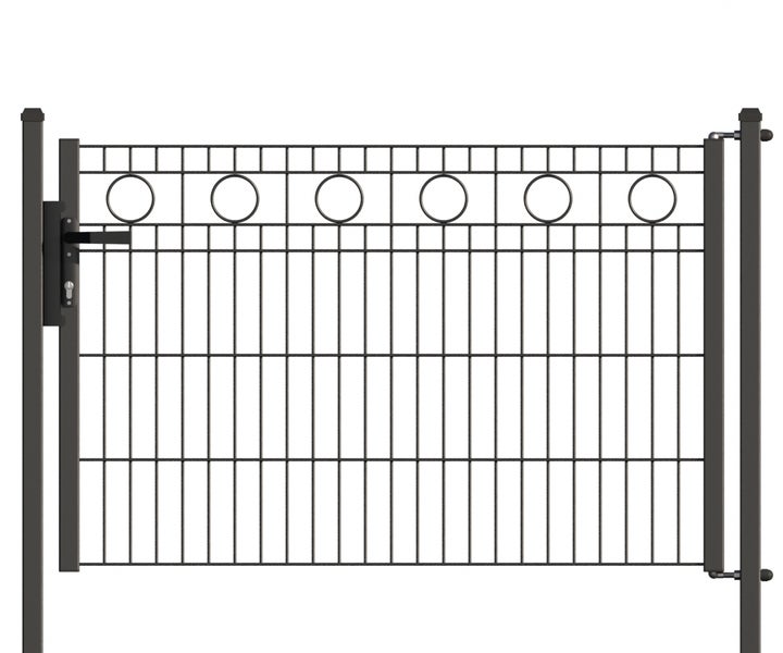 Zauntor ZAUNGURU ECO-Line Kreis aus Metall, Höhe: 83cm, Breite: 143cm, 1-flügelig inkl. Pfosten, Locinox-Schloss und Zubehör, Feuerverzinkt und zusätzlich in RAL 7016 Anthrazitgrau pulverbeschichtet