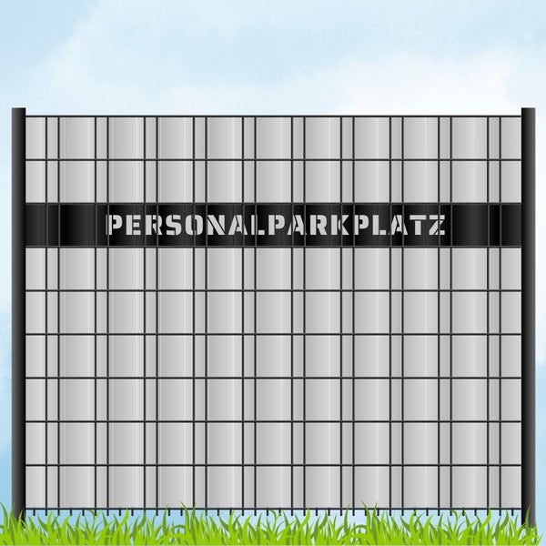 zaun|zu® Sichtschutzstreifen mit Laserbeschriftung PERSONALPARKPLATZ
