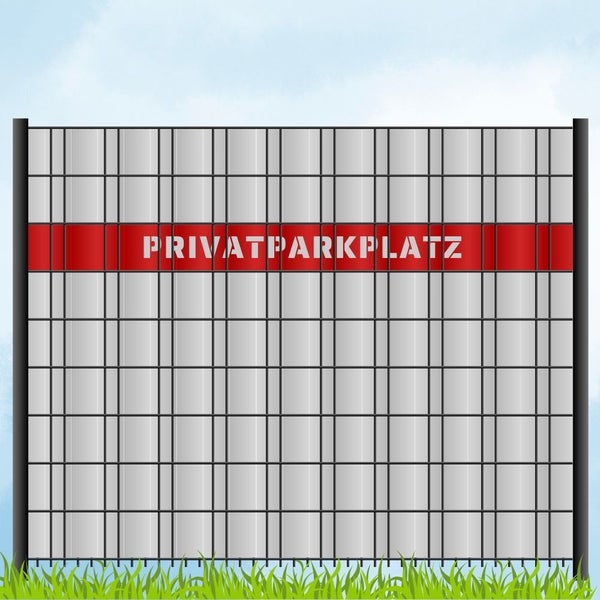 - Im Lieferumfang enthaltenSichtschutzstreifen mit Laser Beschriftung "PRIVATPARKPLATZ"