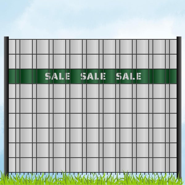 Der Schriftzug SALE SALE SALE wird direkt aus dem Material herausgelasert – eine langlebige, wetterbeständige und elegante Alternative zu klassisch bedruckten Sichtschutzstreifen. Mit einer großen Auswahl an Farbvarianten kannst du deinen Zaun individuell gestalten und perfekt auf dein Corporate Design abstimmen.
